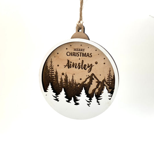 Mountains and Trees Ornament, Customisable